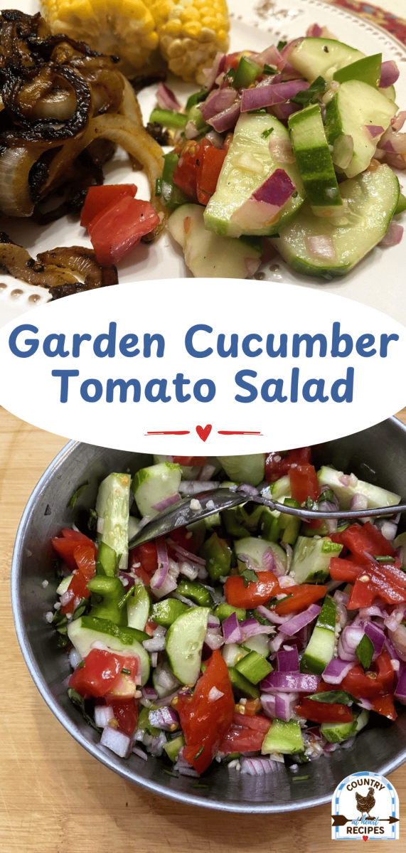 Garden Cucumber Tomato Salad is perfect for a hot summer evening. It is a wonderful way to use up your fresh garden vegetables. And a delicious way to enjoy them!