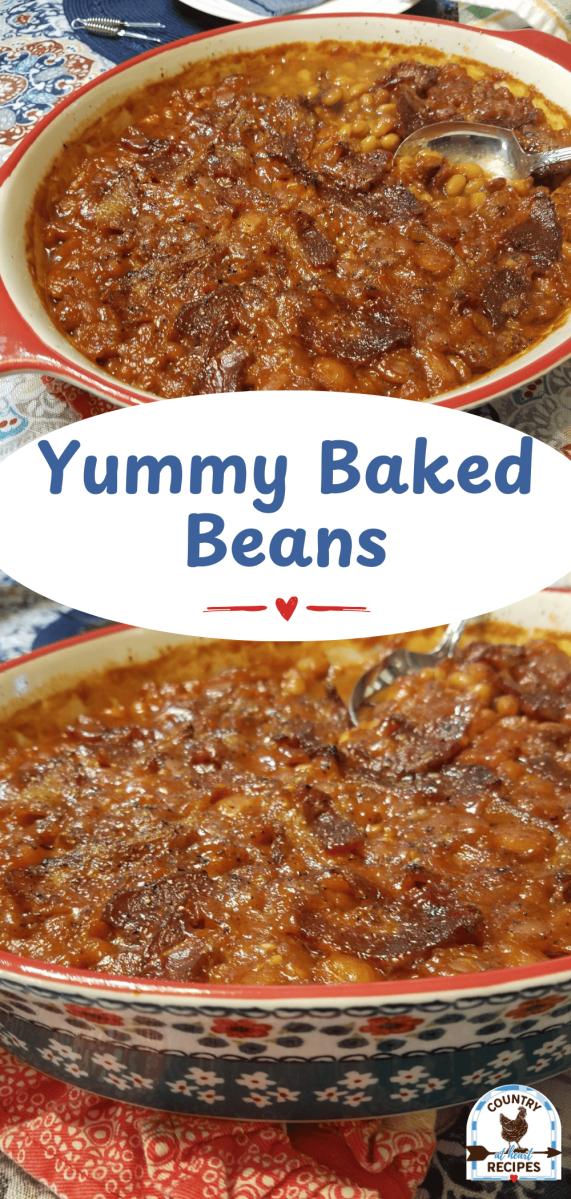 Yummy Baked Beans is an old family favorite. It has been baked and served in our family since I was a little girl. And it’s still one of my favorite side dishes! Sweet and saucy with thick pieces of bacon. It will make your mouth water as it slowly bakes in the oven.