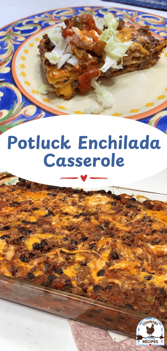 I’m always on the lookout for recipes to take to our church potluck dinner. This Potluck Enchilada Casserole is a great choice when you have a Mexican theme.