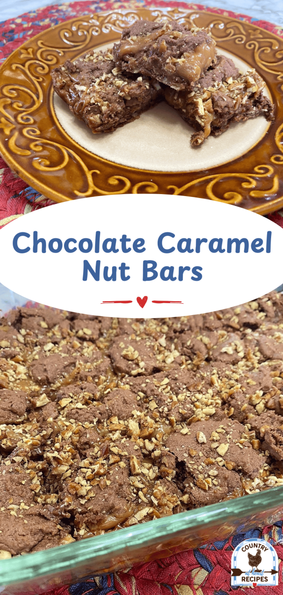 Our family loves these chocolate caramel bars. They rarely last more than two days, and are a perfect choice for family gatherings, or for watching a football game with friends.