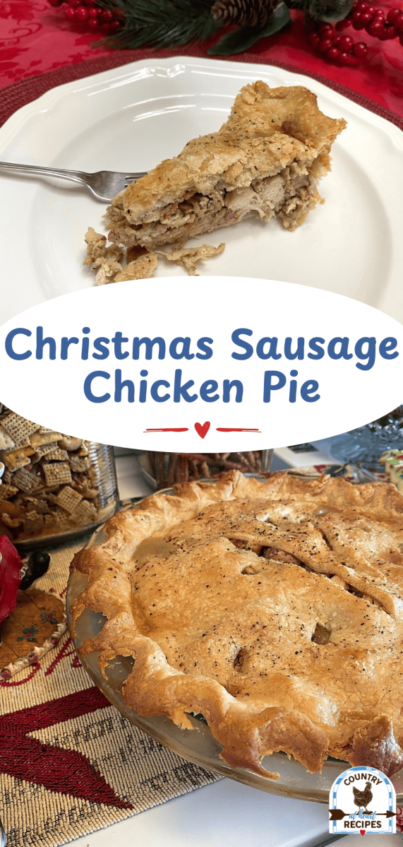 Christmas Sausage Chicken Pie takes some time to prepare, but it’s very good and has become a Christmas tradition at our house. Filled with tender chicken and mildly spiced sausage in a seasoned herb sauce, it goes well with a creamy soup and crescent or dinner rolls.