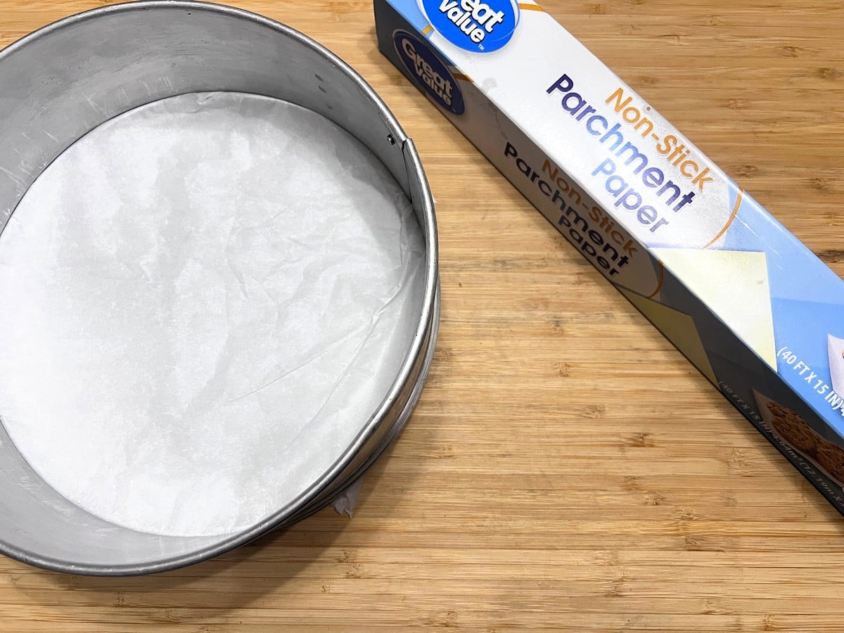 This is an optional step, but it will allow you to easily transfer the cooked cheesecake to a serving plate without any mishaps.