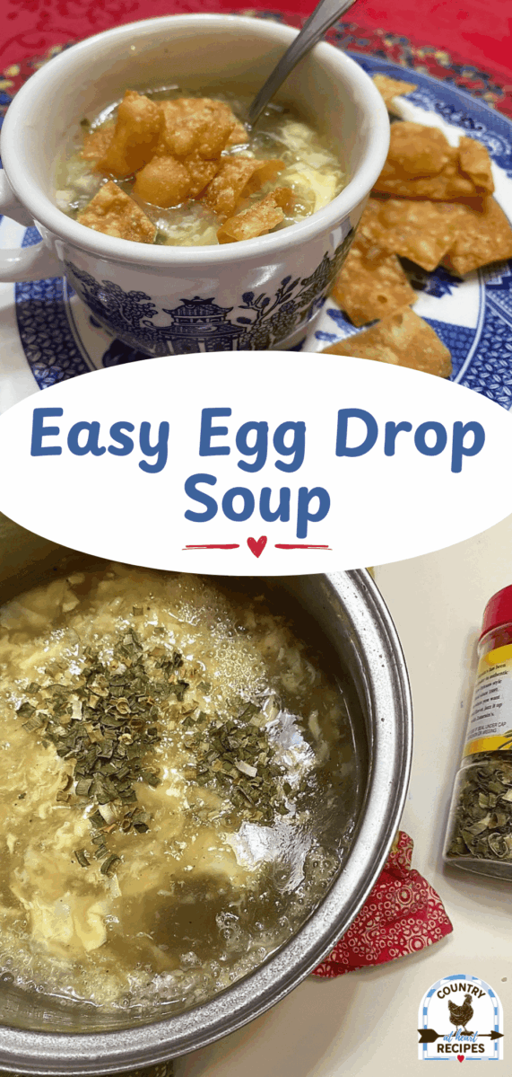 Easy Egg Drop Soup is a delicious and simple recipe to serve with Fried Rice, Egg Rolls, or your next stir fry dinner. I like to serve the soup with fried wonton strips. So yummy!