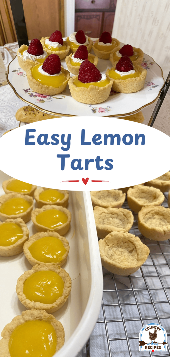 Easy Lemon Tarts are sure to bring a smile to those who eat one! Tender pastries filled with luscious lemon pudding or curd and topped with whipped cream and fresh berries. Perfect for a brunch or afternoon tea party, or simply as a finger food dessert.