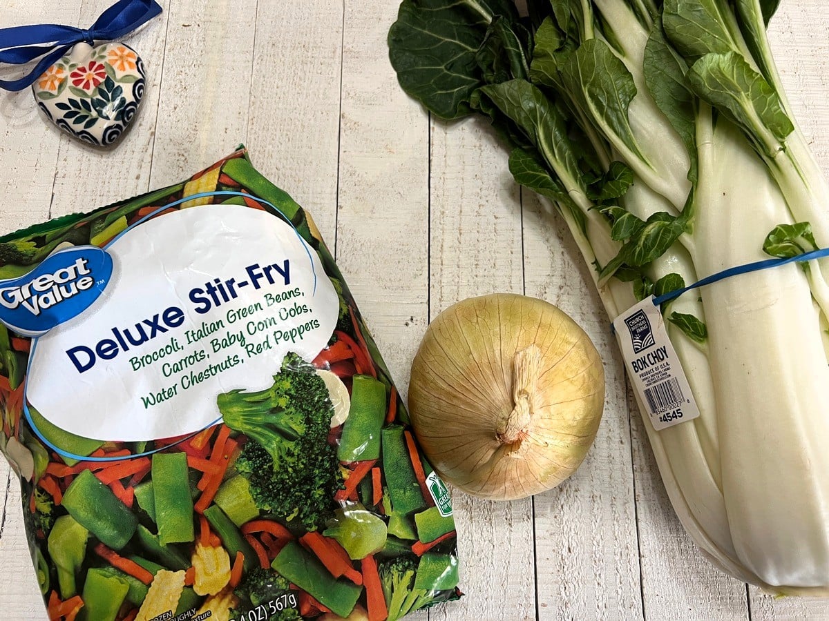 - 16 oz frozen stir-fry vegetable blend thawed in microwave