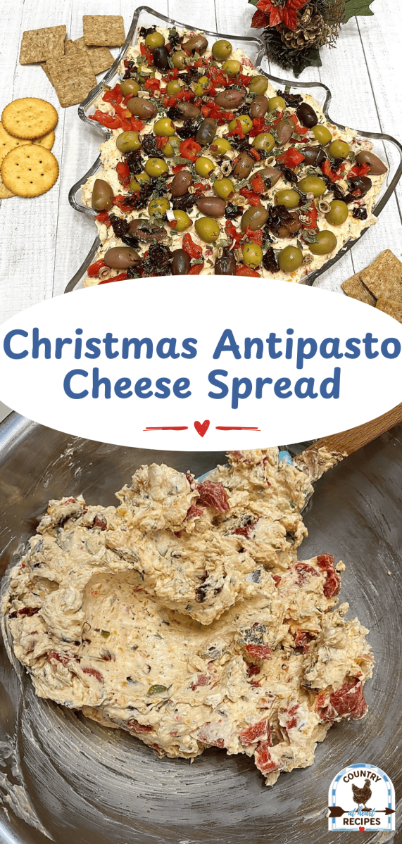 Here’s a fun recipe to make during the holidays for a church or family gathering. This Christmas Antipasto Cheese Spread will have everyone oohing and aahing. It makes for a pretty display on your table, and it tastes really good, too!