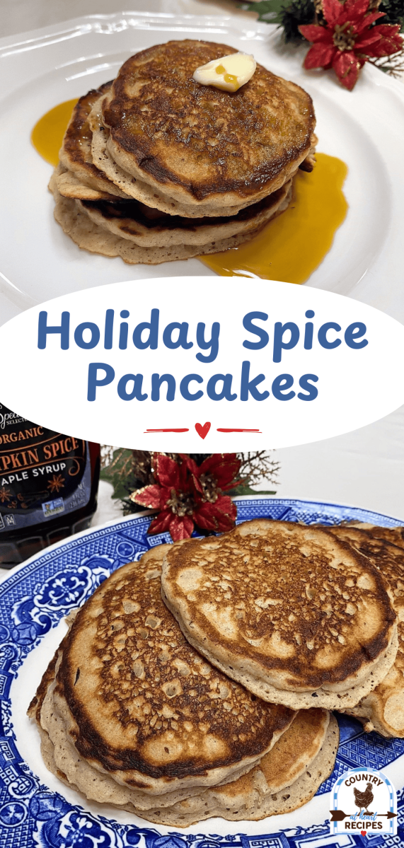 Holiday Spice Pancakes are really good with pure maple syrup or even a Pumpkin Spice Maple Syrup that I found at Aldi grocery store this season. If you can find it in their stores, I recommend that you give it a try! Hint: It also works really well in my Bourbon Pecan Pie recipe.