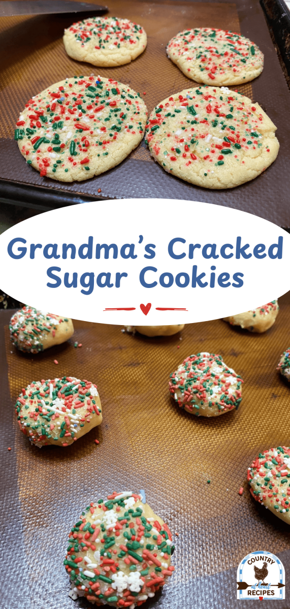 Grandma’s Cracked Sugar Cookies is one of my favorite holiday recipes. I love making them during the Christmas season using holiday sprinkles–but they are delightful any time of year!