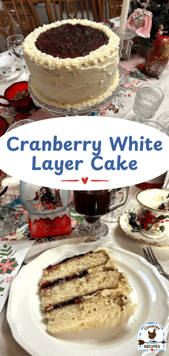 Every December food magazines boast amazingly beautiful white cakes on their front covers to celebrate Christmas. This Cranberry White Layer Cake is my celebration cake, with three moist vanilla layers, divided and topped with an orange cranberry filling, then enrobed with Orange Cream Cheese Buttercream Frosting. It’s a layer cake worthy of a front cover.