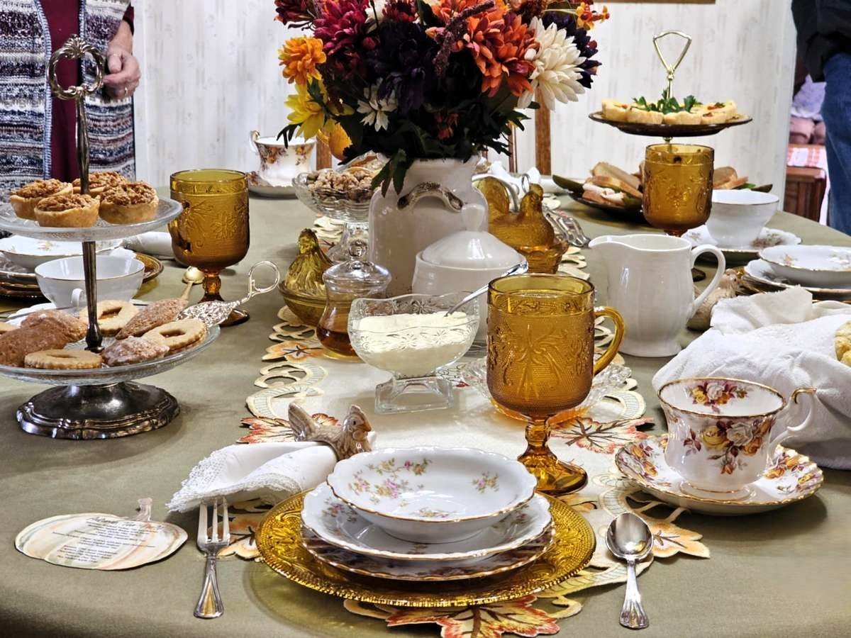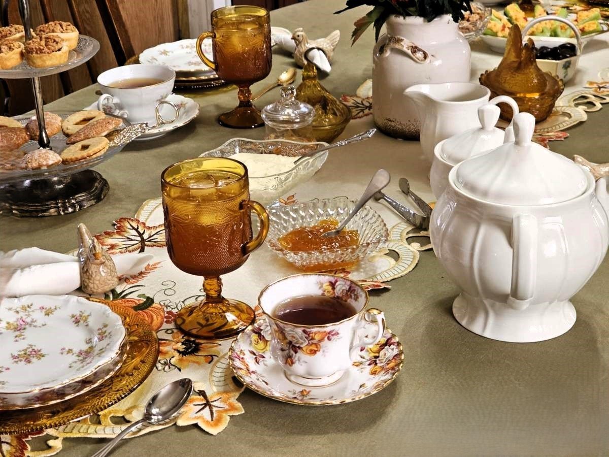 When planning a tea party, one of the first things I like to do is consider the theme, which will include colors, flowers, dishes and tableware, along with table linens. For an autumn party, you’ll want to choose colors and flowers of the season, so think yellow, orange, brown, and red.