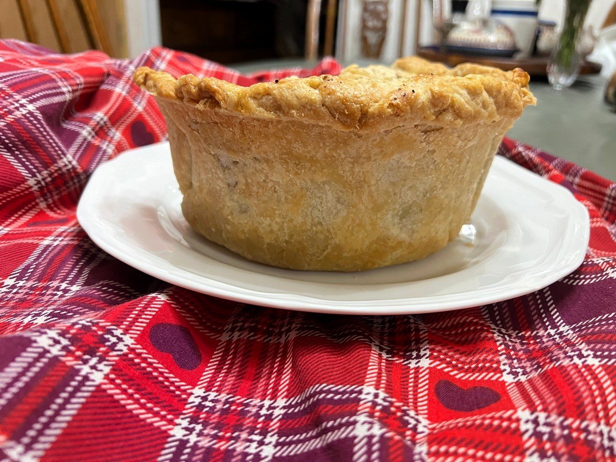 I have been infatuated with English cuisine for awhile now, ever since watching The Great British Bake Off. Think of this recipe as an American Pork Pie, not with minced meat, as the English would make, but certainly savory, and especially tasty with brown gravy and Yorkshire Pudding. Watch for that recipe soon!